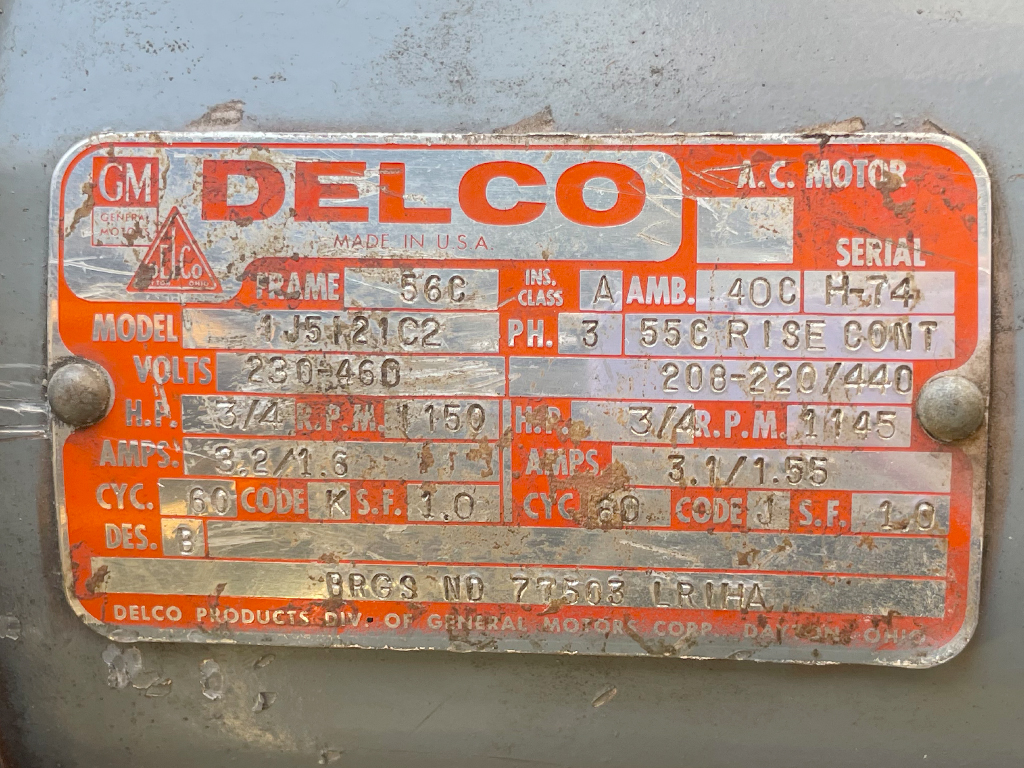 Motor: 3/4 - 1,200 RPM